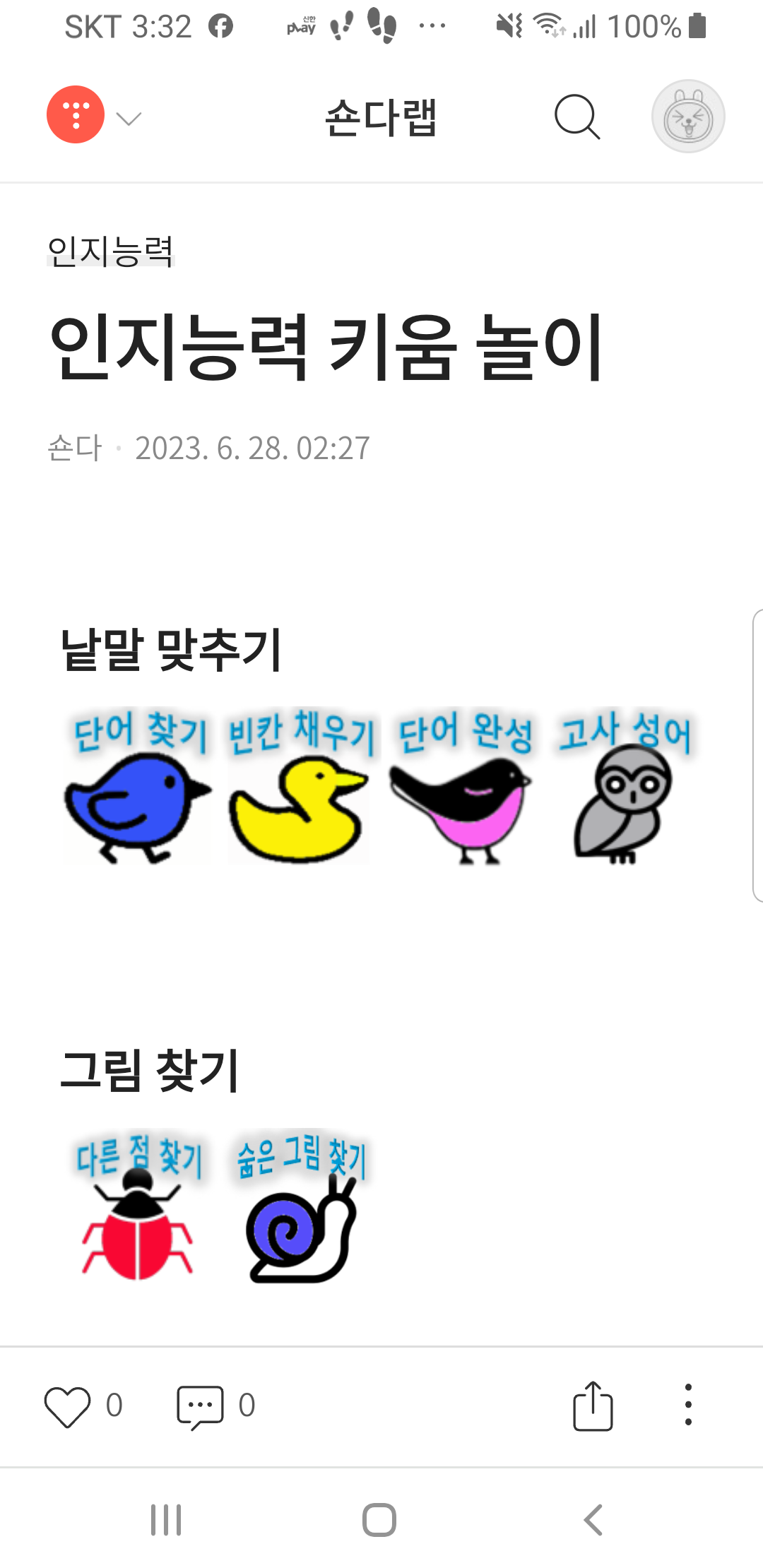 - 건강> 인지능력 향상 콘텐츠 (단어 퍼즐, 숨은그림 찾기 등)