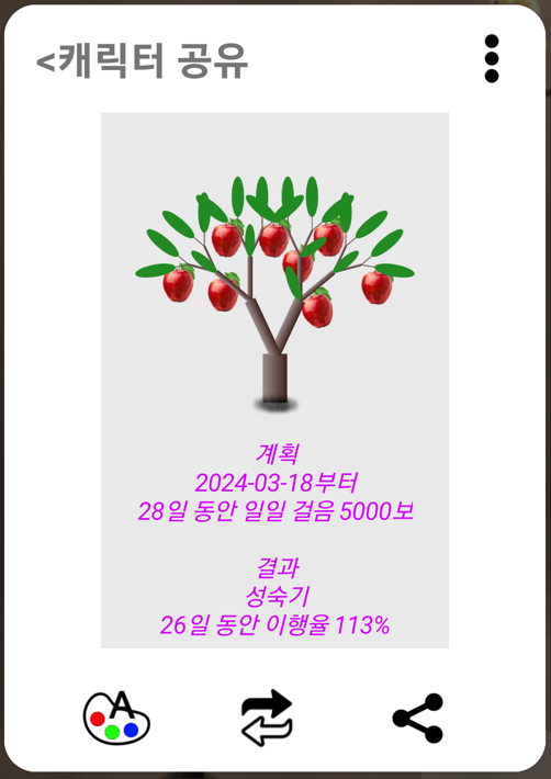 사과나무를 터치하면 '캐릭터 공유' 화면이 뜬다.