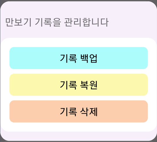 기록 백업: 데이터 베이스에 있는 걸음 기록을 백업 파일에 보관 합니다. 같은 파일 이름이 이미 존재하면 뒤에 숫자를 붙여서 저장합니다.