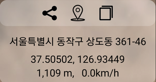 주소 표시 불가 상황에서는 GPS 좌표가 표시된다.