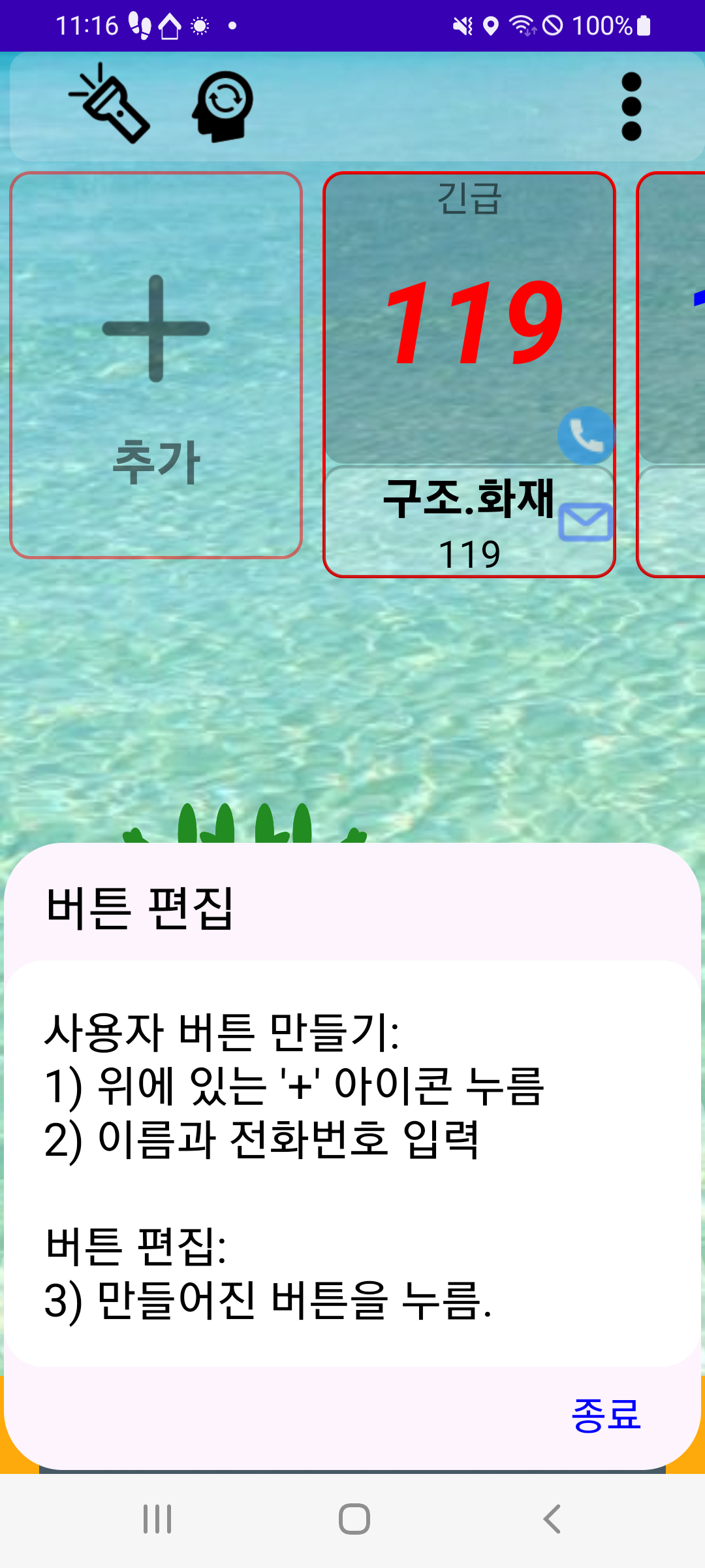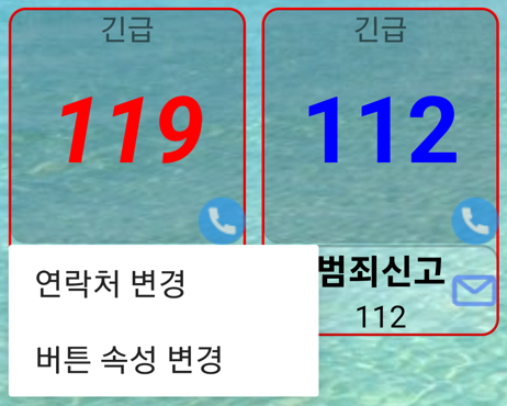 긴급 버튼 (119/112/122) 을 추가/변경/삭제 할 수 있다.