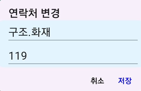 여기서 '연락처 변경' 을 누르고 연락처 이름과 전화번호를 입력한다.