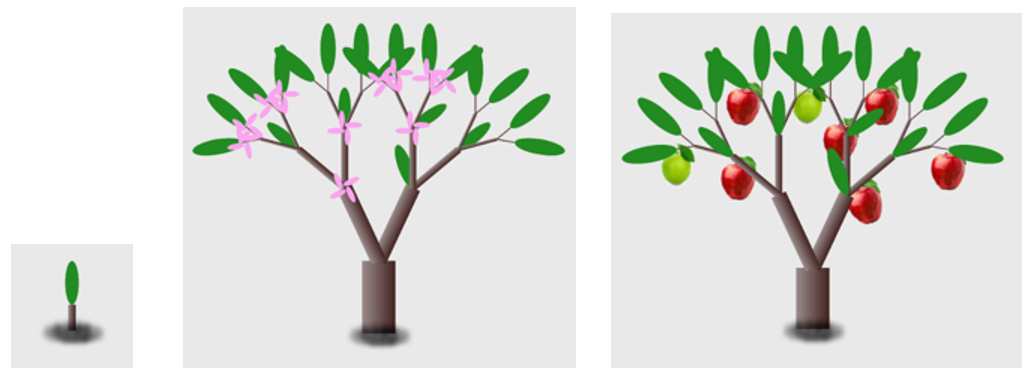 전체 성장 기간은 4주이고 아래와 같이 4단계의 성장 과정이 있습니다. :